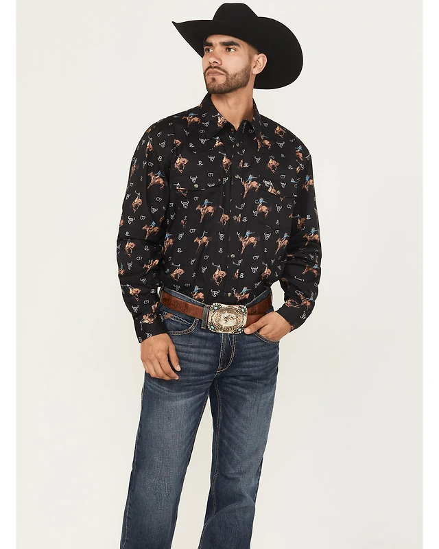 Cowboy Hardware Men's Bronc Conversation Print Long Sleeve Snap Western Shirt