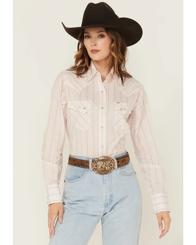Cowboygirl by Jenna Paulette Women's Striped Long Sleeve Pearl Snap Western Shirt