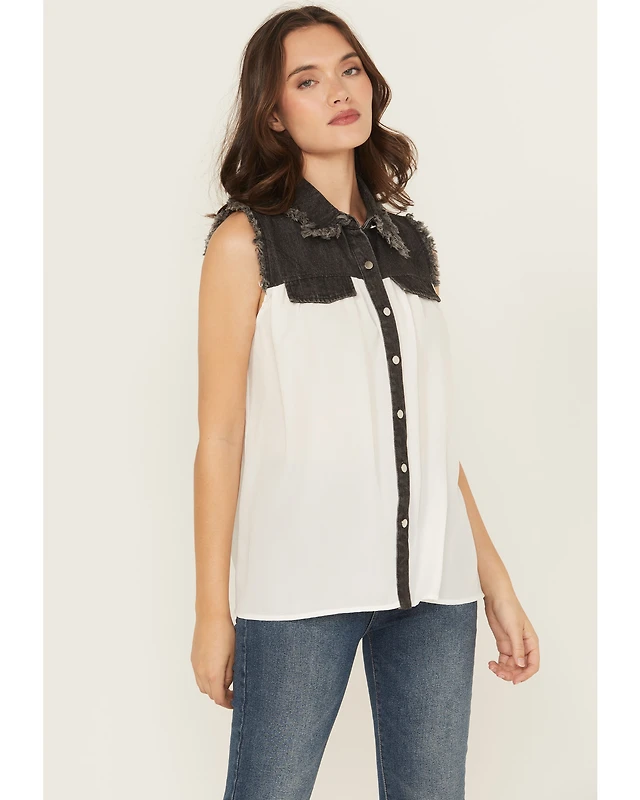 Cowgirl Hardware Women's Sleeveless Denim Chiffon Blouse