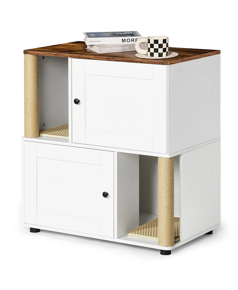 Cozito Double Cat Litter Box Enclosure Cabinet with Shelf and Scratching Post, Fits Two Litter Boxes, White and Vintage Finish