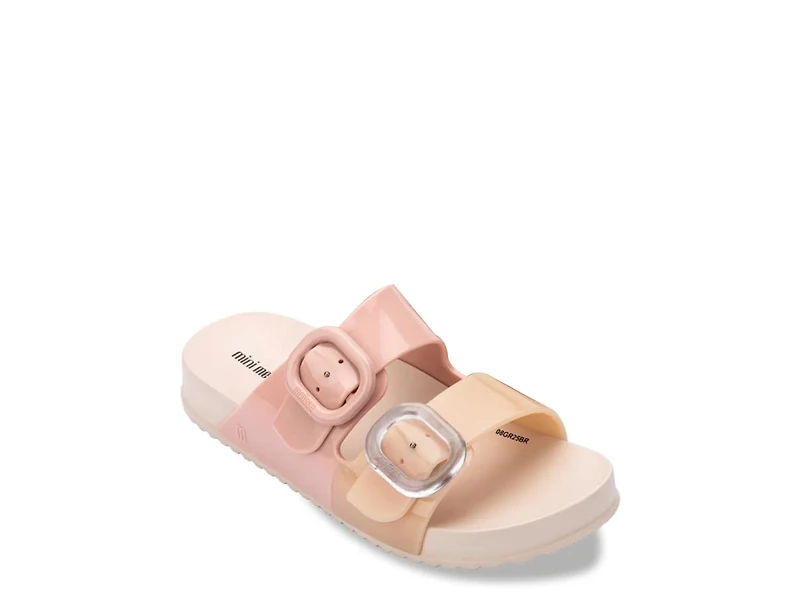 Your little one enjoys well-rounded style with the Mini Melissa Cozy slide sandal. This sandal sports lightweight durable materials, a cushy footbed, and a signature scent that ensures a supportive fit.