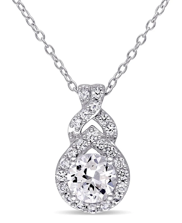 Created White Sapphire (1 4/5 ct. t.w.) Sterling Silver, Teardrop Halo Necklace