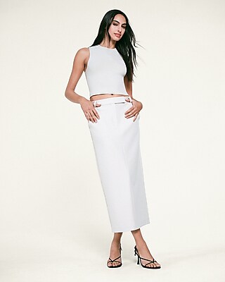 Crepe Knit Body Contour Crew Neck Sweater Tank