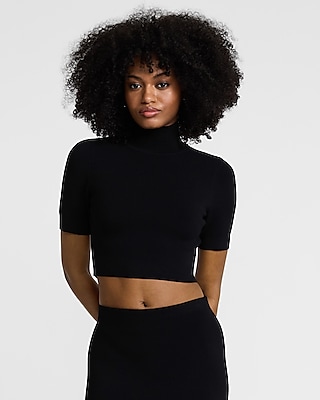 A classic mock neckline and short sleeves make up this cropped sweater created in your favorite shape-defining tech in a smooth, all-season fabric.