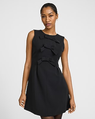 A classic little black dress with front bow details for a trendy, festive look. This sleeveless style is crafted in a sheath silhouette and can be styled solo or paired with tights for a chic finish.