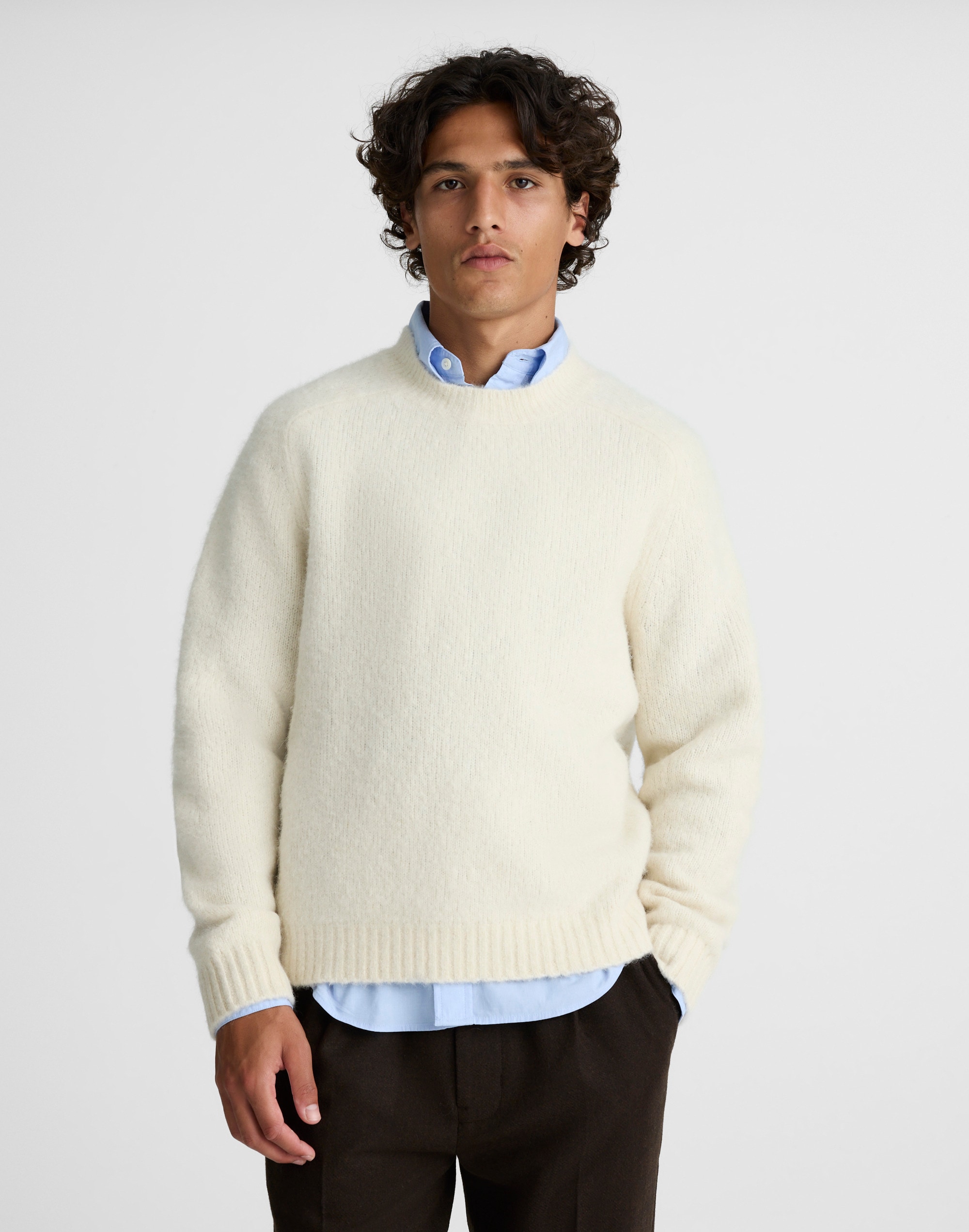 Made from a plush and luxurious blend of yak and alpaca with a touch of wool, this fuzzy sweater is incredibly soft and weighty enough to withstand even the coldest days. Finished with classic ribbed trim, this crewneck is great for all occasions.