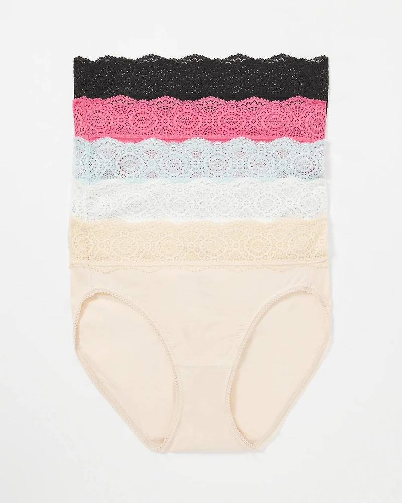 Dare to show a little leg? The subtle cut of these high-leg panties gives your legs an elongated look and defines your waist for a flattering fit. Enjoy all-day everyday comfort with the soft and breathable fabric. This multi-pack includes five pairs of high-leg panties.