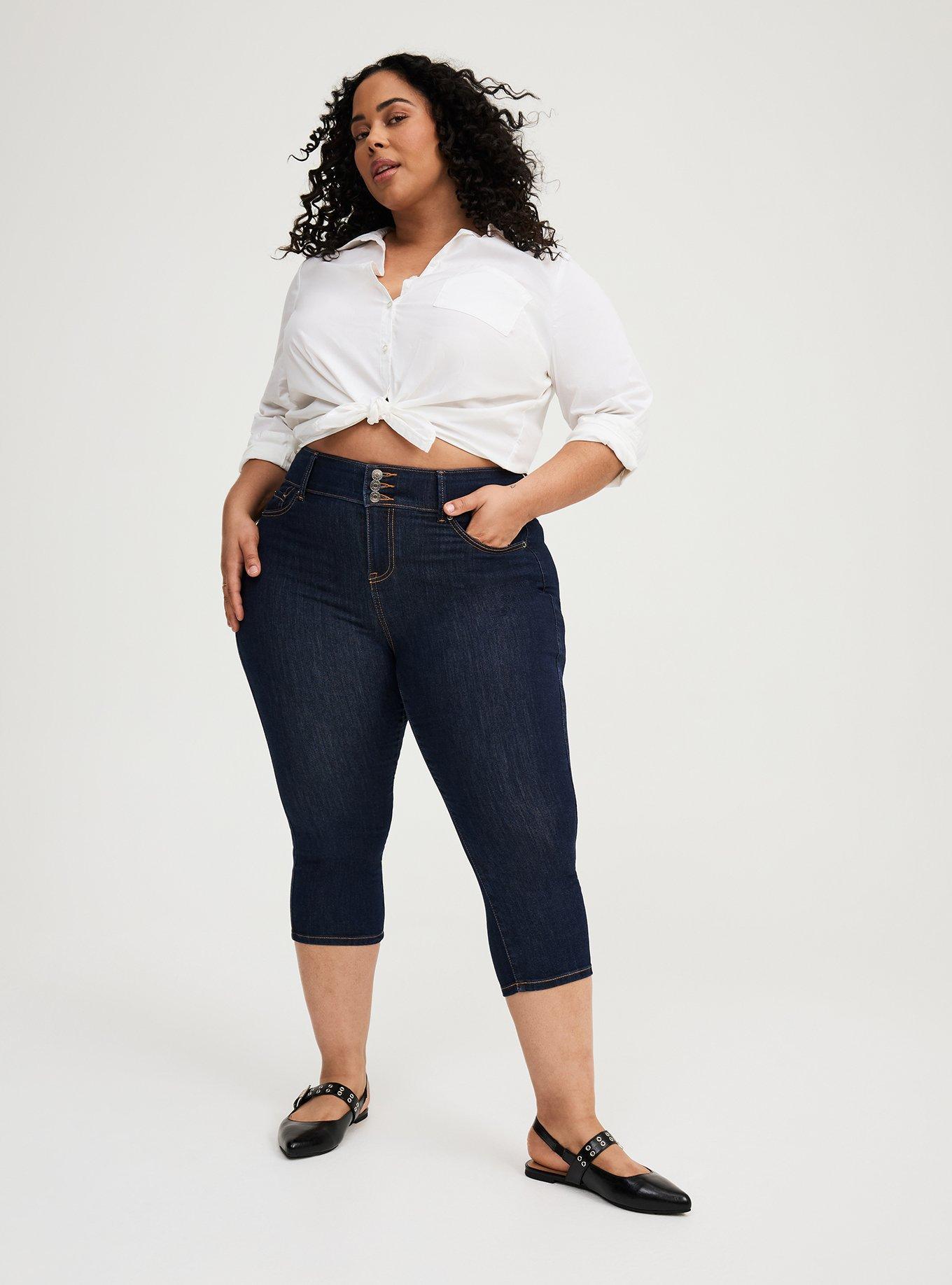 FIT High rise. Super skinny fit from hip down. Gap-proof elastic waistband for all-day comfort. Perfect for every body shape with ultimate comfort and compression. Cropped length. 22"" inseam. MATERIAL + CARE Super Soft Denim: Extraordinary stretch with a buttery brushed feeling soft enough to sleep in (and we have!). Stretch level: High. 65% cotton, 20% rayon, 13% polyester, 2% spandex. Machine wash cold, inside out. Tumble dry low. Imported. DETAILS 3-button front. 5-pocket design.