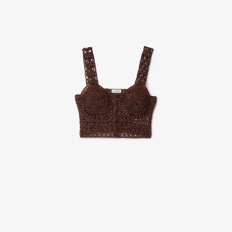 Cropped Crochet Mouliné Cotton Top in Black/red - Women | Burberry® Official in Bloomington, MN