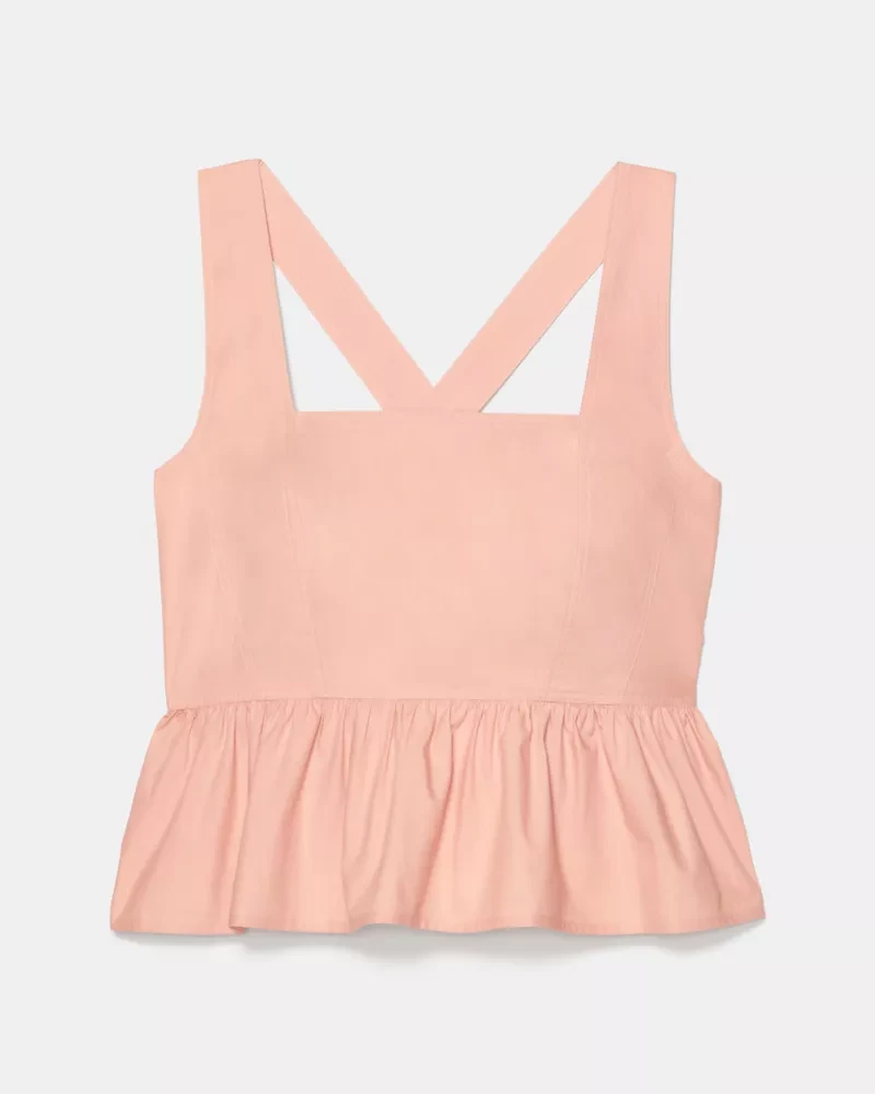 Peplum is back—and we're welcoming it with this cross-back top. Lightweight cotton poplin lends an airy finish, and the cropped length complements high-waisted pants and skirts alike.