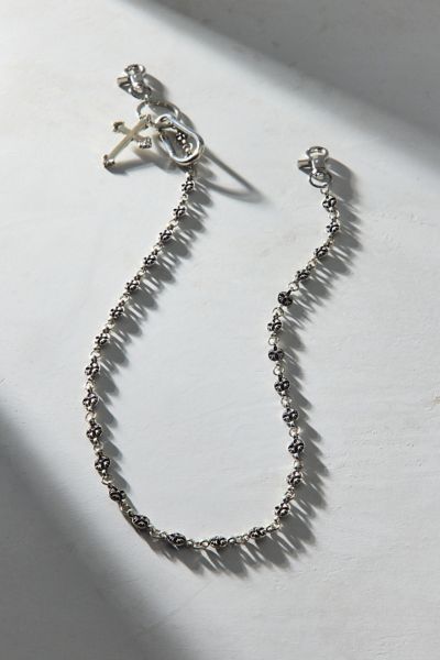 Metal link wallet chain with a cross charm accent. Includes 2 clasp closures to attach to your belt loop and wallet.