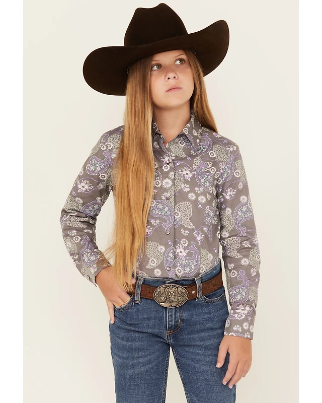 Cruel Girl Girls' Paisley Print Long Sleeve Snap Western Shirt