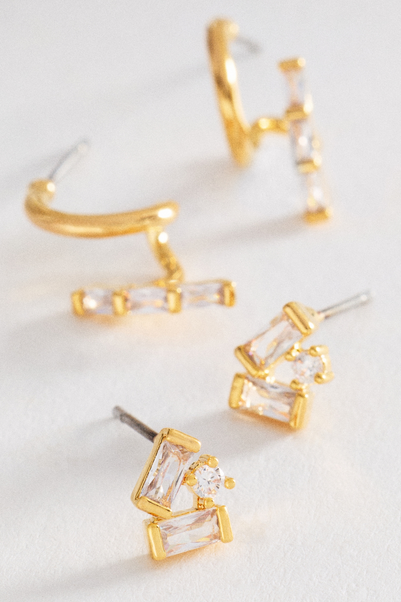 Geometric Crystal Huggie Earrings, Set of 2
