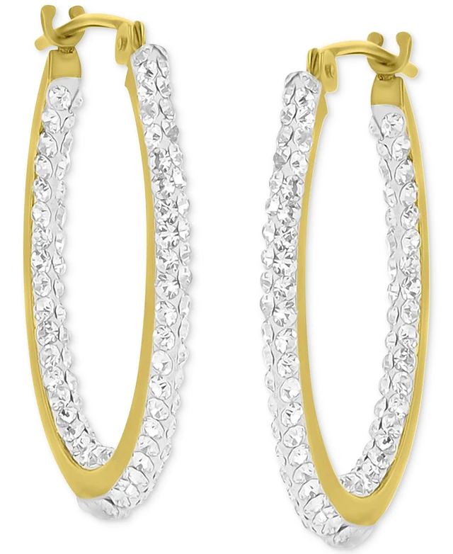 Crystal Pave In & Out Small Hoop Earrings in 10k Gold, 0.79"