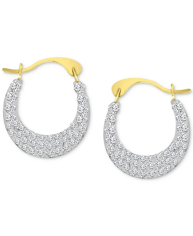 Crystal Pave Small Hoop Earrings in 10k Gold, 0.59"
