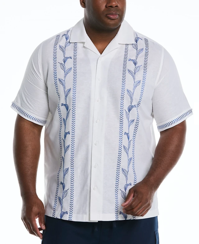 Cubavera Men's Big & Tall Classic-Fit Leaf Embroidered Panel Linen Blend Button-Down Camp Shirt