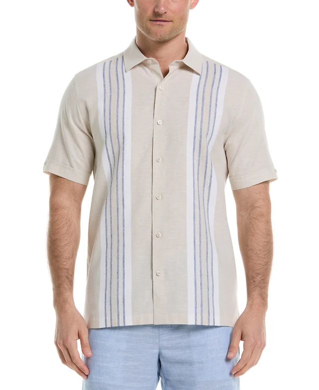 Cubavera Men's Classic-Fit Engineered Stripe Panel Linen Blend Button-Down Shirt