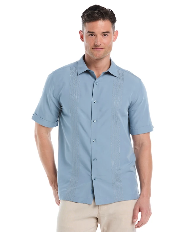 Cubavera Men's Pick Stitch Panel Short Sleeve Button-Down Shirt