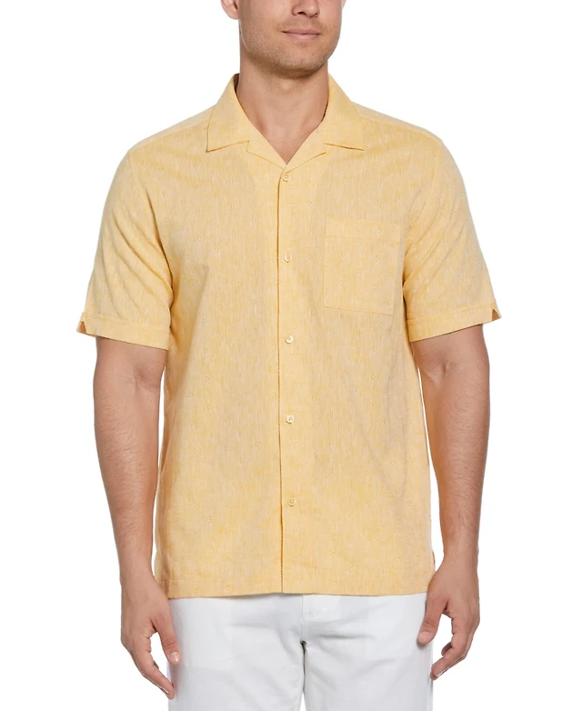 Cubavera Men's Linen Blend Diamond Dobby Print Short Sleeve Button-Down Shirt