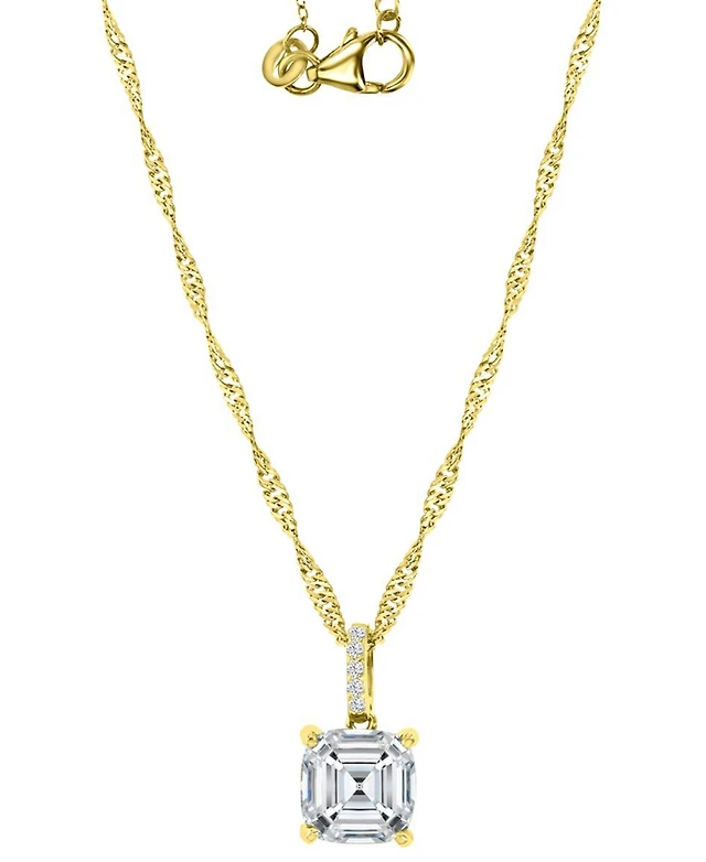 Cubic Zirconia Cushion-Cut Solitaire Pendant Necklace, 18" + 2" extender