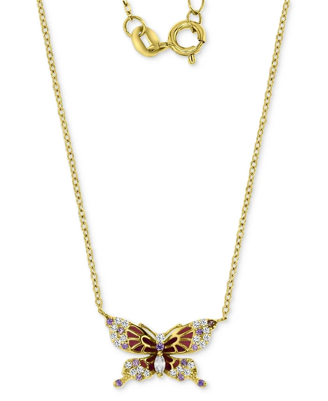 Cubic Zirconia & Enamel Multicolor Butterfly Pendant Necklace in 14k Gold-Plated Sterling Silver, 16 + 2" extender