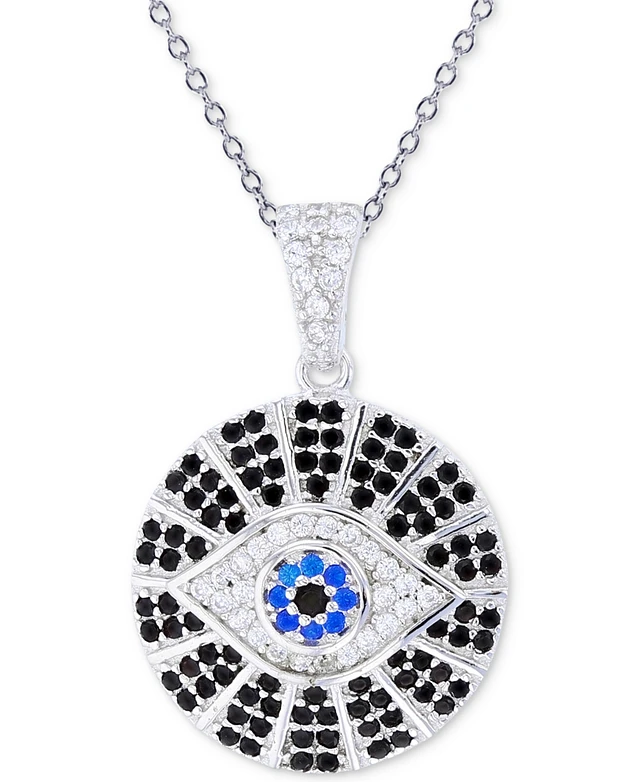 Cubic Zirconia Evil Eye 18" Pendant Necklace in Sterling Silver