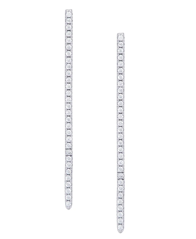Cubic Zirconia Line Stud Silver Plate Earrings