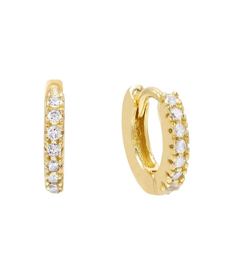 Cubic Zirconia Mini Huggie Earring 14k Gold Plated Over Sterling Silver