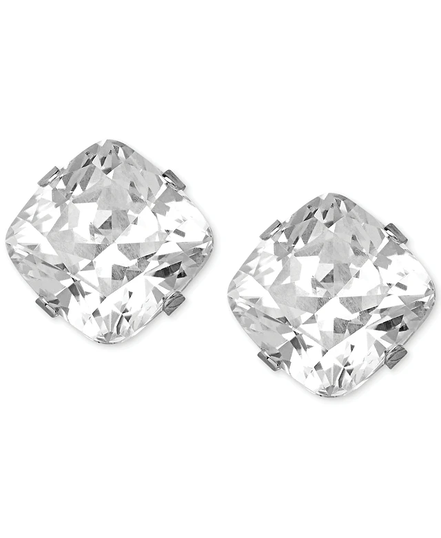 Cubic Zirconia Square Stud Earrings 14k Gold