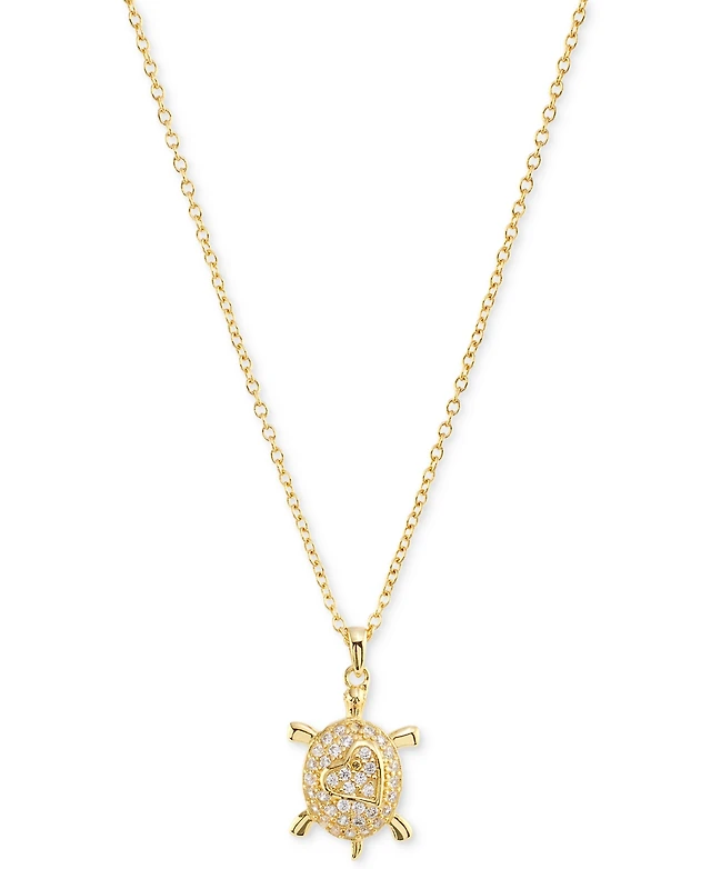 Cubic Zirconia Turtle Pendant Necklace (3/8 ct. t.w.) in 14k Gold over Sterling Silver