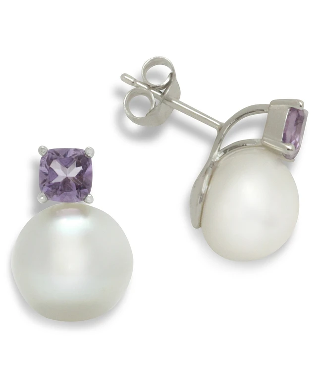 Cultured Freshwater Pearl (11mm) & Amethyst (1-1/4 ct. t.w.) Stud Earrings in Sterling Silver