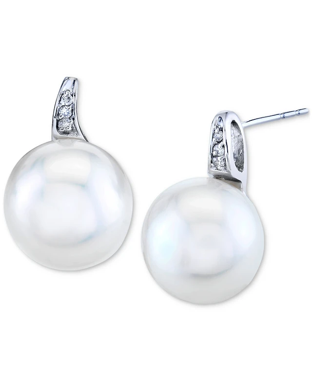 Cultured Freshwater Pearl (11mm) & Diamond Accent Earrings Stud Earrings in 10k White Gold