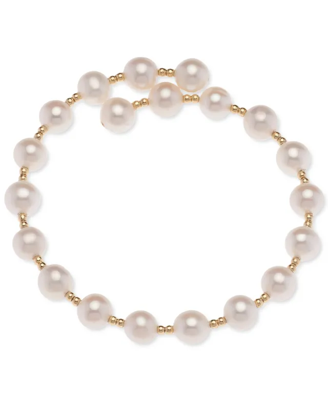 Cultured Freshwater Pearl (8-8.5mm) Beaded Bracelet in 14k Gold over Sterling Silver Made in Italy