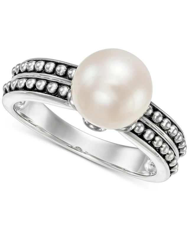 Cultured Freshwater Pearl (8-1/2mm) Beaded Double Ring in Sterling Silver