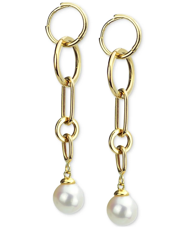Cultured Freshwater Pearl (9-1/2mm) Link Drop Earrings in 18k Gold-Plated Sterling Silver