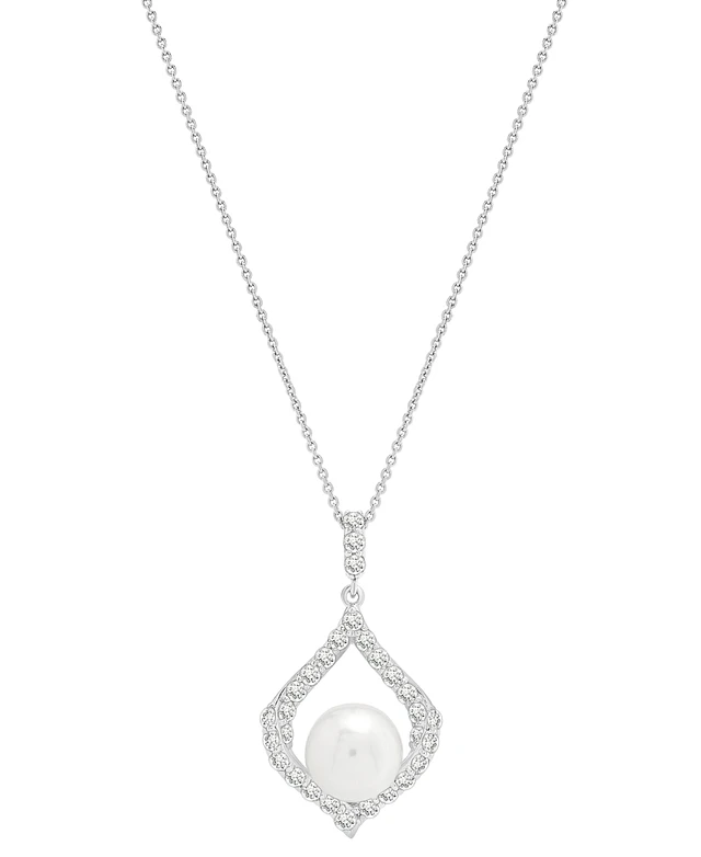 Cultured Freshwater Pearl (8mm) & Lab Grown White Sapphire (1 ct. t.w.) 18" Pendant Necklace in Sterling Silver in Bloomington, MN