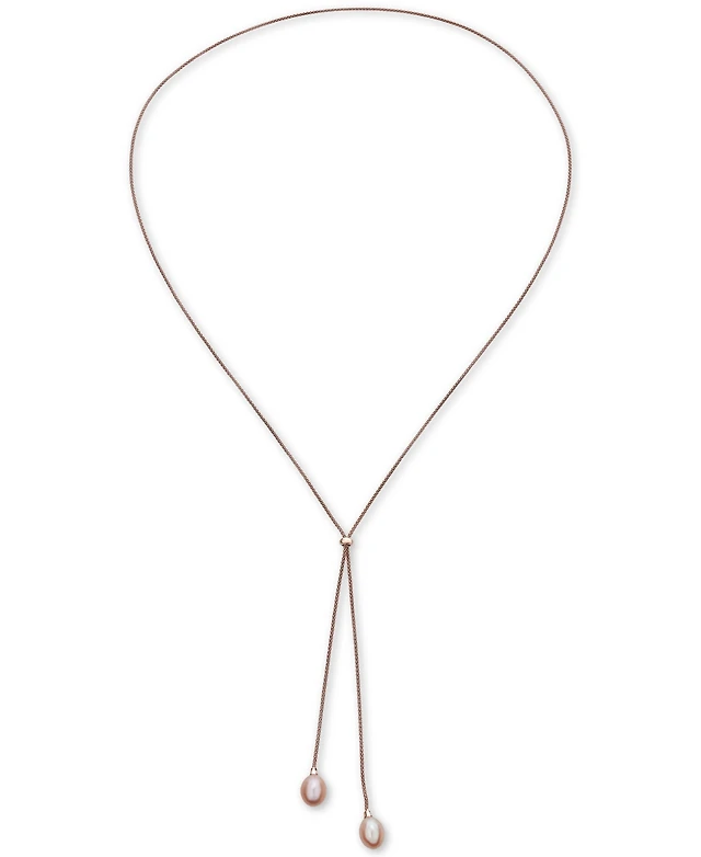2-Pc. Set Cultured Freshwater Pearl (7 x 9mm) Lariat Necklace & Drop Earrings in Sterling Silver