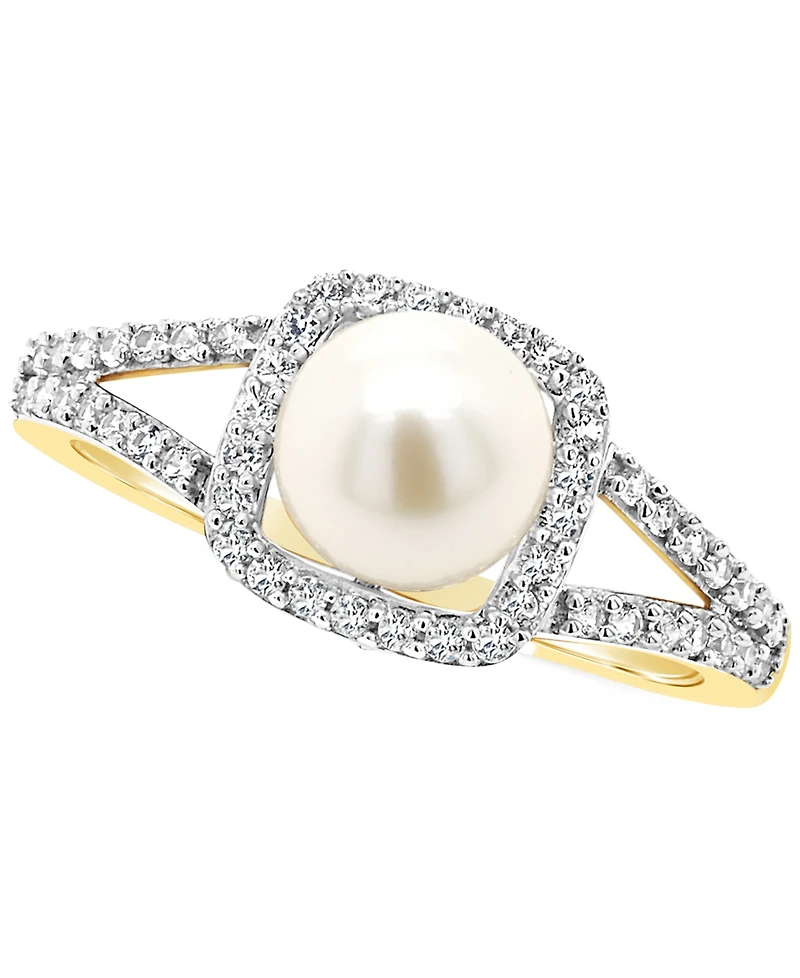 Cultured Freshwater Pearl & Lab-Grown White Sapphire (1/4 ct. t.w.) Halo Ring 10k Gold (Also Onyx)
