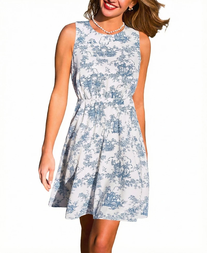 The Duchess Toile Mini Dress feels polished and put together! A round neckline, sleeveless cut, elasticized waist, and bow detail shape a charming, refined silhouette. Product code: CAA05F6A071TC