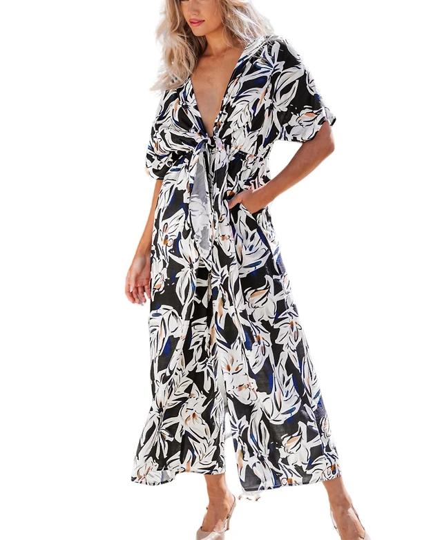 Cupshe Women's Floral Print V-Necktie Front Jumpsuit