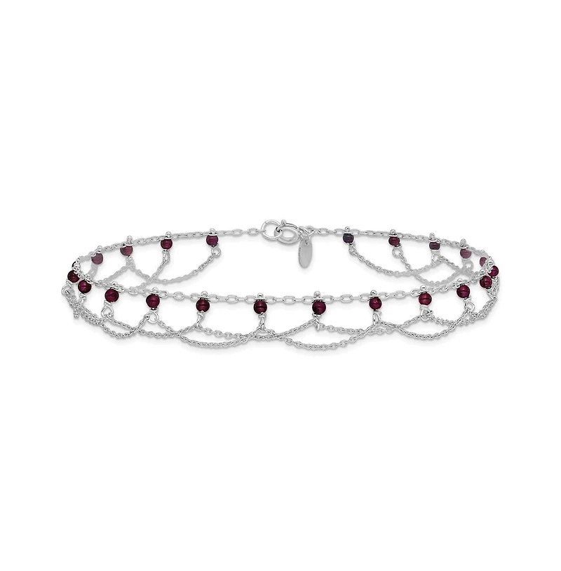 A Gift of Timeless Elegance. 925 Sterling Silver 10 Inch Rhodolite Garnet Beaded Draped Anklet - in Sterling Silver - Product Attributes: - Polished - Rhodolite garnet - - Measures 1mm Wide - Width of Item: 1 mm - Length of Item: 10 in - Chain Length: 10 in - Chain Width: 1 mm - Clasp /Connector: Spring Ring - Finish: Polished - Chain Type: Link-Other - Feature: Solid -