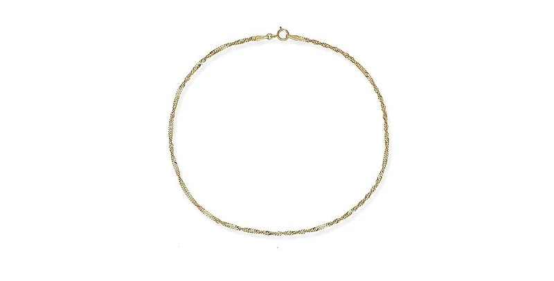 Curata Jewelry Solid 10k Gold 10 Inch 1.5mm Sparkle-Cut Singapore Chain Anklet