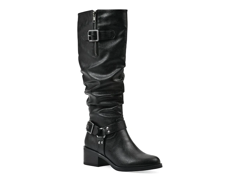 Exhibit Western vibes whereever you go with the White Mountain Cushion riding boot. Heavily inspired by Western fashion, this tall boot boasts ruched detailing, a buckle strap and faux zipper that raise the style factor. Its functional zipper enables convenient wear.