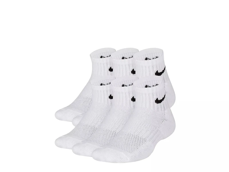 From playtime to game day, the Nike Cushioned socks keep young athletes moving forward. They're powered by Dri-FIT sweat-wicking technology and feature a snug band around the arch for a supportive feel. Breathable mesh at the top helps feet stay cool.
