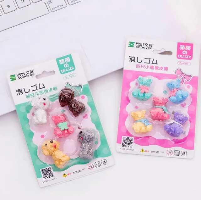 Cute Teddy Bear & Dog Series Mini Erasers Card