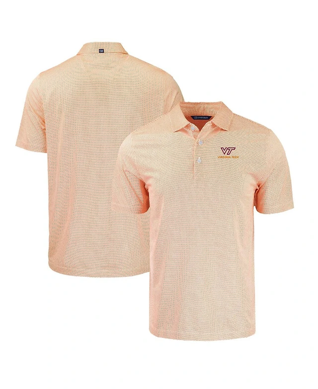 Cutter & Buck Men's Orange/White Virginia Tech Hokies Pike Eco Symmetry Print Stretch Polo