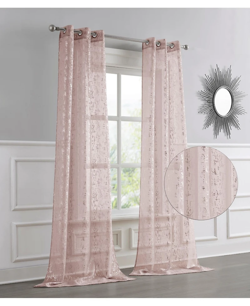 Transform your home with the Lindsey Linen Textured Metallic Grommet Curtain Panel Pair, designed to add graceful elegance and a soft shimmer to any living room, bedroom, or dining space. Made from slub-textured polyester fabric, these curtains offer the classic look of linen with the durability, wrinkle resistance, and easy care of high-quality polyester. The metallic abstract design features delicate blooming details that add depth, texture, and a sophisticated decorative accent that complements modern, glam, transitional, and traditional decor styles. This 2-panel set measures 76" W x 84" L (38" per panel) to provide full window coverage while softly filtering natural light to brighten your room while maintaining privacy. Each panel features stylish metallic grommets for easy installation and smooth movement on most standard rods. Machine washable cold and tumble dry low for easy care and long-lasting beauty.