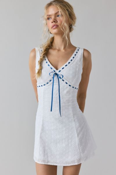 Daisy Street Eyelet Lace Ribbon Detail Plunge Mini Dress