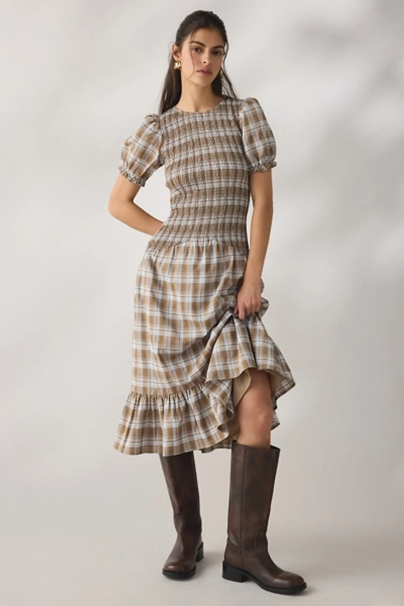 Daisy Street Nectar Puff Sleeve Smocked Midi Dress
