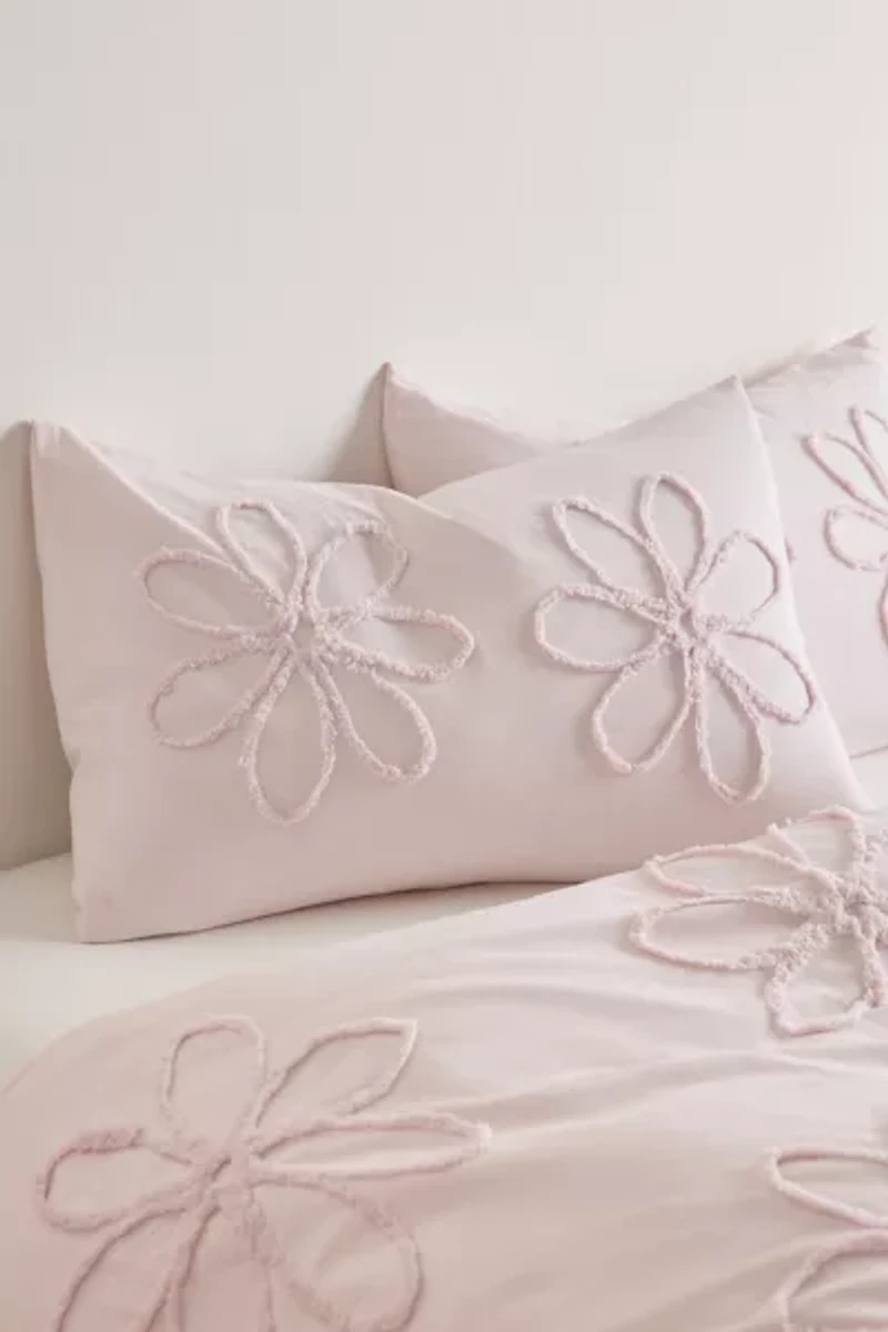 Add a whimsical layer to your bedding with these tufted pillow shams in our signature, lightweight core cotton fabrication. This lightweight pillow sham set features tufted daisy florals allover the top panel, with a solid panel at the reverse. Pair this floral bedding essential with our Daisy Tufted Core Duvet Cover for a coordinated bedding set. Pilling and tufting fall out may occur over time due to natural wear. Available exclusively at Urban Outfitters.